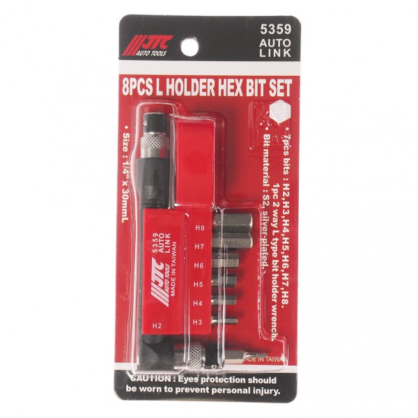 Набор бит 1/4 HEX с Г-образным держателем 8 предметов JTC JTC-5359