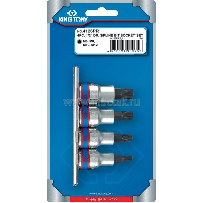 Набор торцевых насадок 1/2, SPLINE, М6-М12, L = 80 мм, 4 предмета KING TONY 4126PR (Код: 4126PR)