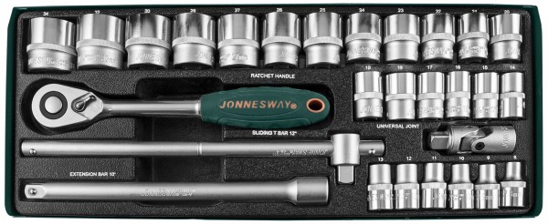 Набор торцевых головок 1/2DR 8-34 мм, 28 предметов (ложементы) S04H4728SP