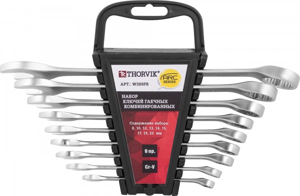 Набор ключей комбинированных на пластиковом держателе 8-22 мм, 9 предметов W3S9PR