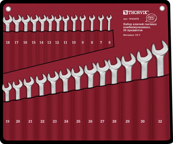 Набор ключей комбинированных в сумке, 6-32 мм, 26 предметов W3S26TB